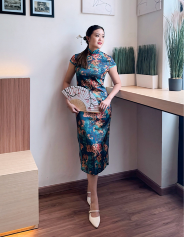 Qipao klasik dengan sentuhan modern, terbuat dari silk premium berwarna teal (hijau kebiruan) dengan motif bunga elegan. Potongan body-fit menonjolkan siluet tubuh yang anggun, sementara detail kerah mandarin dan list merah memberi nuansa tradisional yang mewah. Spesifikasi Produk: - Model: Qipao / Cheongsam classic floral - Bahan: Ramie halus premium - Motif: Bunga klasik - Warna: Teal dengan aksen merah - Tekstur: Lembut, jatuh, & nyaman di kulit Ukuran: M : Lingkar Dada: 96 cm | Panjang: 109 cm Kelebihan Produk: - Bahan silk premium yang adem & nyaman dipakai - Motif bunga elegan, terlihat mewah dan feminin - Jahitan rapi dengan kualitas tinggi - Potongan slim-fit yang membentuk siluet tubuh - Cocok untuk acara formal & tradisional Cocok Dipakai Untuk: - Sangjit & Lamaran - Tea Pai - Perayaan Imlek - Pesta & acara spesial lainnya