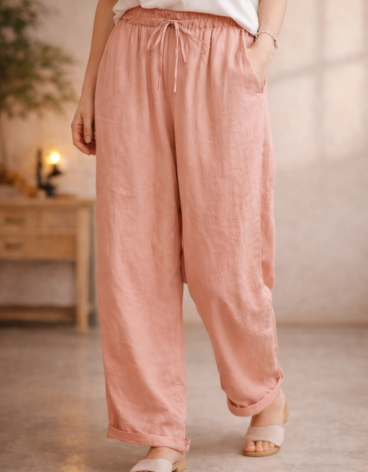 Soft Blush Ramie Pants dibuat dari bahan ramie ringan & breathable yang nyaman dipakai seharian. Teksturnya halus dengan jatuh natural, memberi kesan santai namun tetap rapi. Desain wide & relaxed fit membuat siluet terlihat effortless dan mudah dipadukan dengan berbagai atasan. Detail pinggang elastic waistband dengan tali serut memberikan fleksibilitas dan kenyamanan ekstra, cocok untuk aktivitas harian maupun momen santai. Detail Produk: Material: Ramie ringan & adem Warna: Soft Blush Pink Fit: Relaxed / wide leg Pinggang: Karet + tali serut Nyaman, breathable, dan tidak kaku Perfect for: daily wear, travel, lounge, atau casual outing.
